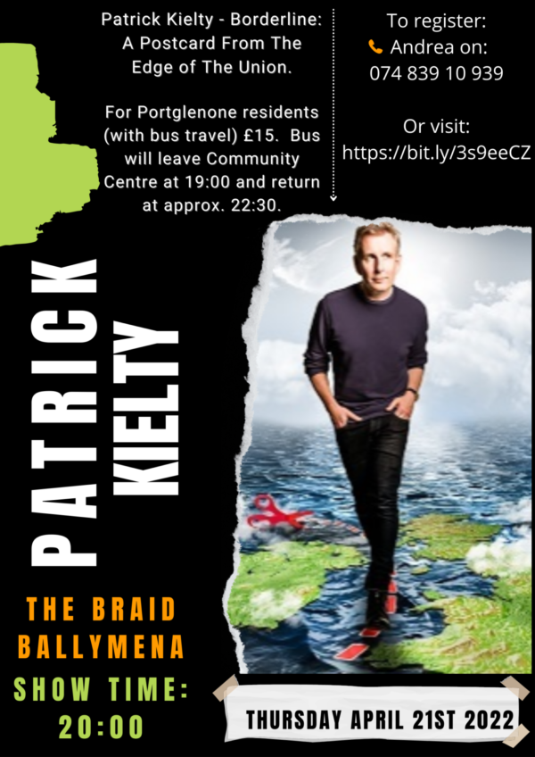 Bus will collect everyone after the show and will have you back at the Community Centre in Portglenone for approximately 10:30pm.